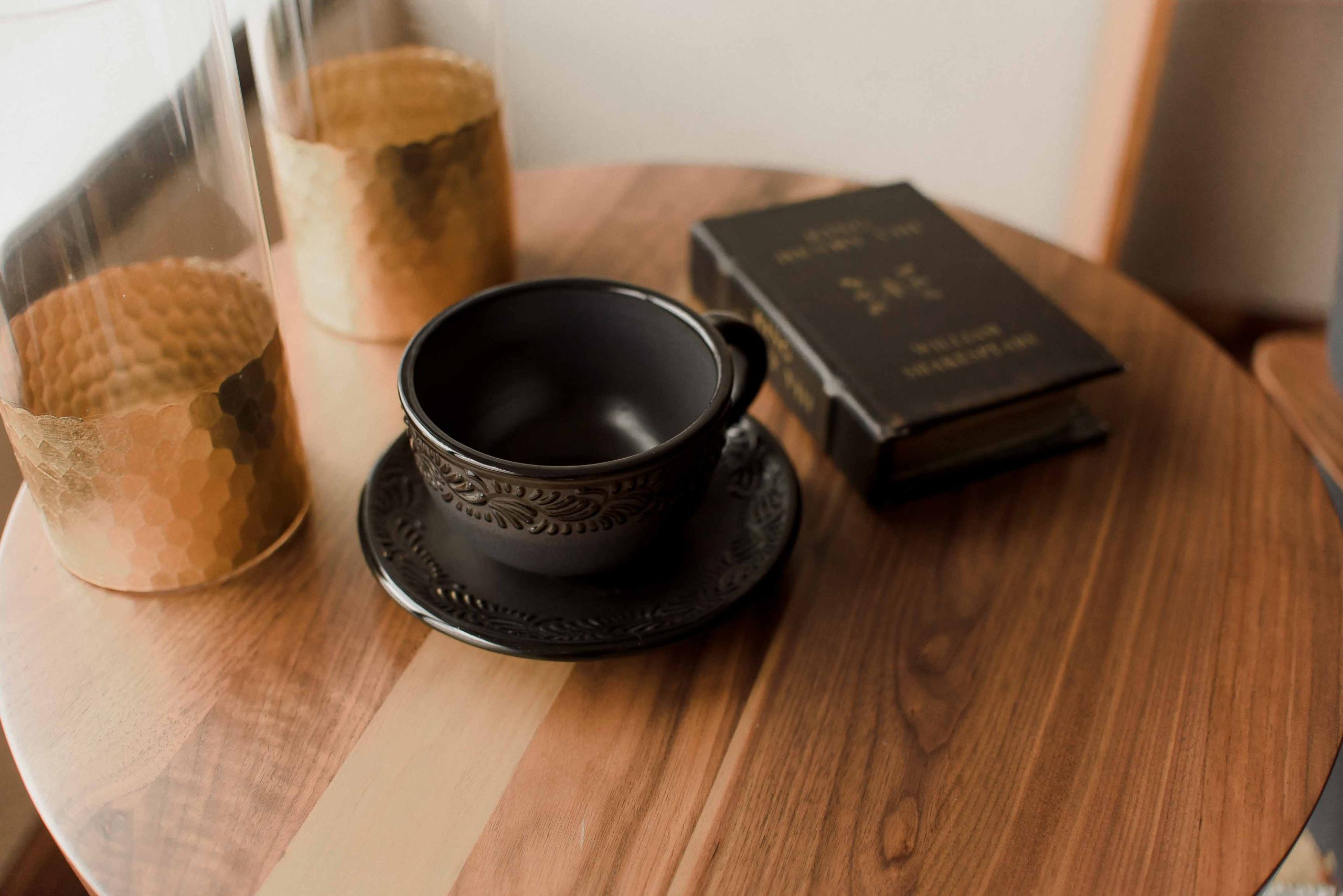 4 platos y 4tazas. Negro mate con decorado negro brillante.